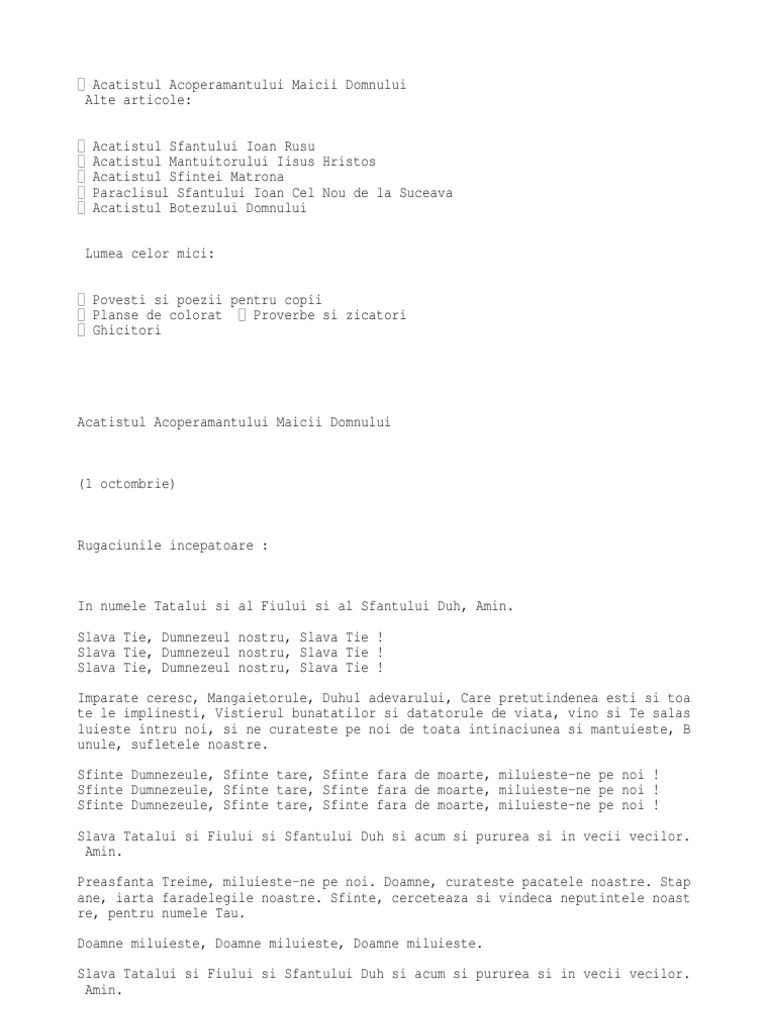 Acatistul Sfantului Acoperămant Al Maicii Domnului 1 Octombriesursa Http Www Doxologia Ro Acatist Acatistul Sfantului Acoperamant Al Maicii Domnuluisursa Http Www Doxologia Ro Acatist Acatistul Sfantului Acoperamant Al Maicii Domnului