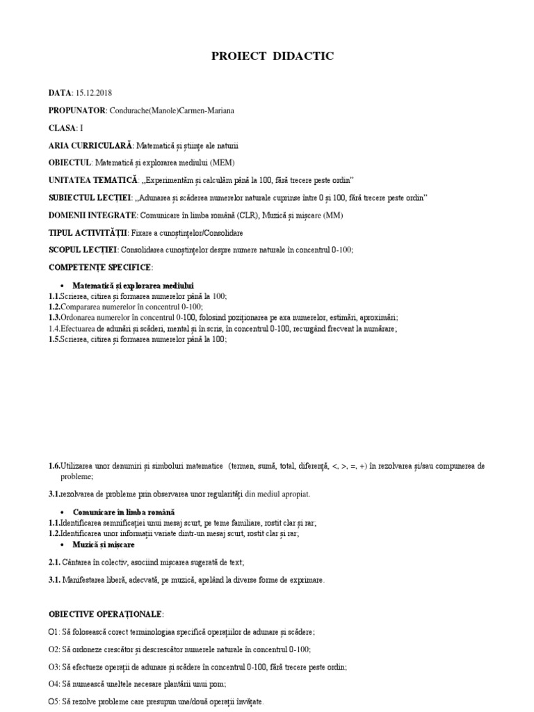 Doc Proiect De Lecţie Mikyy Elisa Academia Edu