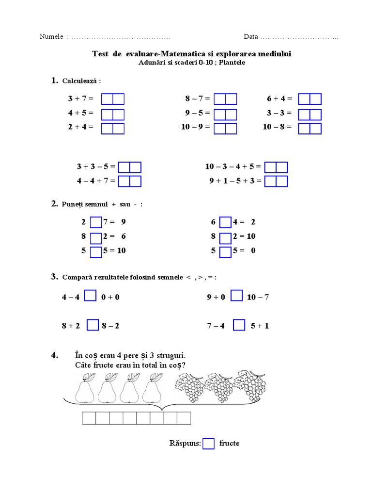 Exerciții De Adunare și Scădere 0 10 Materiale Didactice Matem