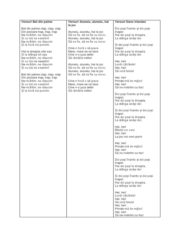Alunelu Hai La Joc Cu Versuri Tralala