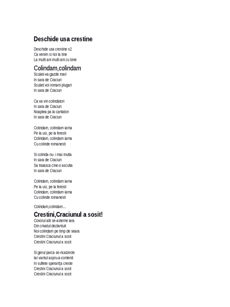 Cele Mai Frumoase Colinde Iata Versurile Colindului Deschide Ușa Creștine