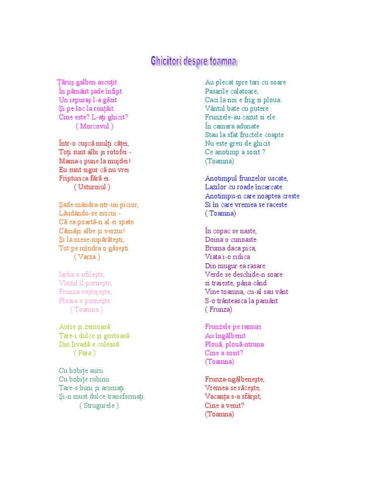 Ghicitori Despre Toamna