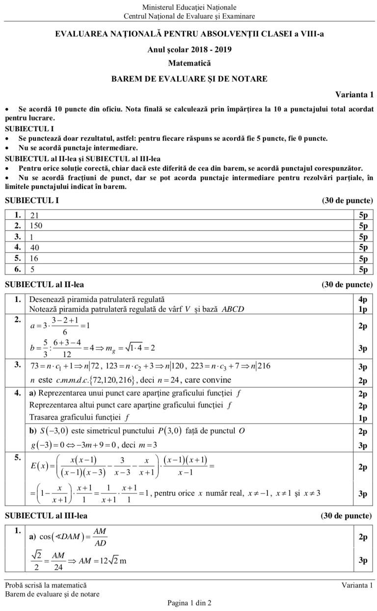 Barem La Matematică Evaluare Naţională Clasa A Viii A 2019 Publicat De Minister Cum Se Corectează Lucrările Alba24