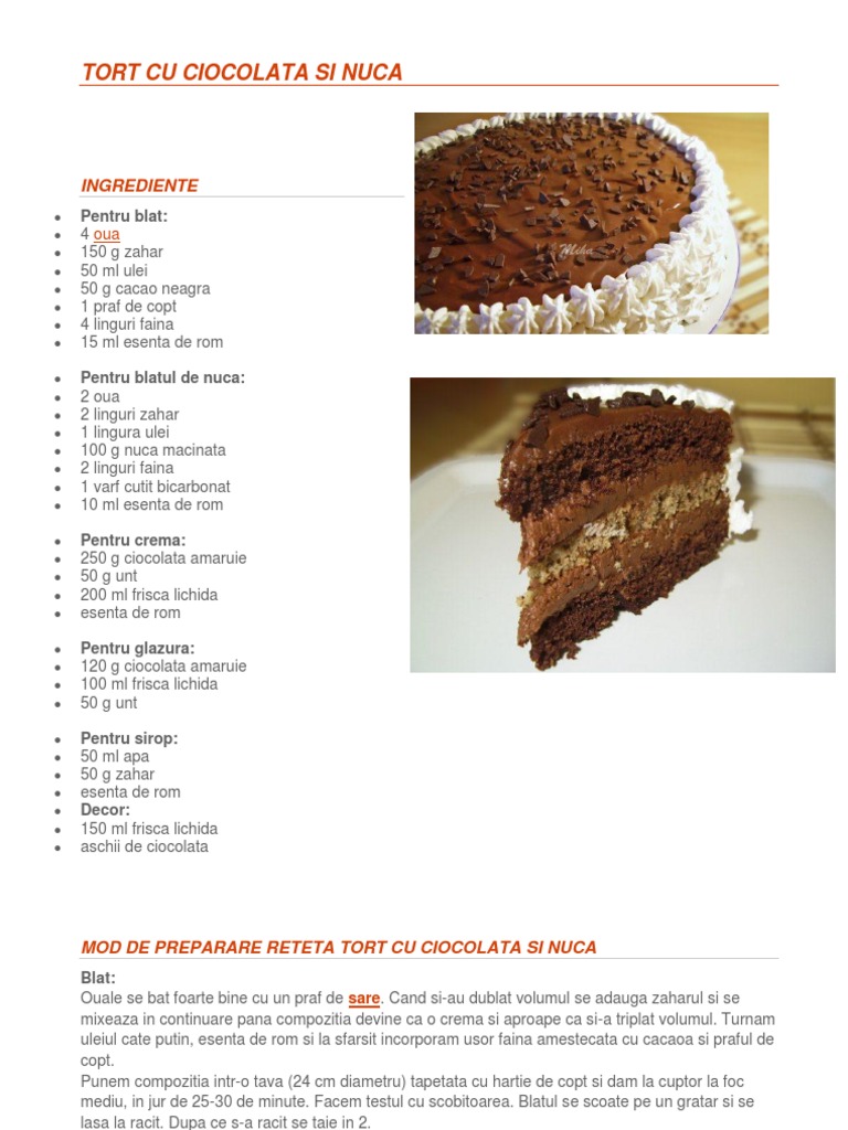 Tort Cu Ciocolata Si Nuca