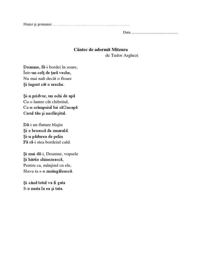 Cantec De Adormit Mitzura Lectie