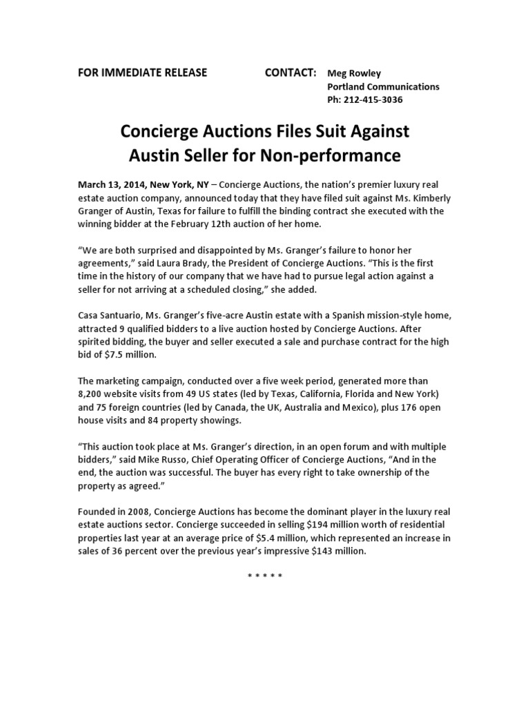 Concierge Auctions Vs Casa Santuario Owner Kimberly Granger Hospitality Industry Service Industries