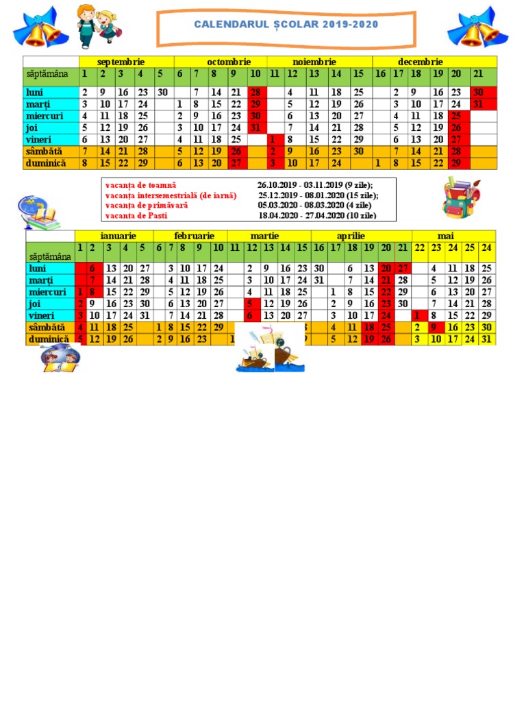 Calendar Scolar 2019 Si 2020 Didactic