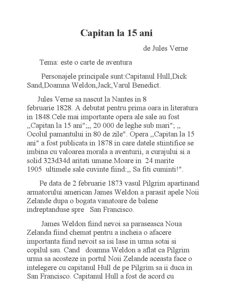 Va Rog Frumos Am Nevoie De Rezumat Al Cartii Capitan La 15 Ani Aproximativ 20 Randuri Sa Cuprinda Brainly Ro