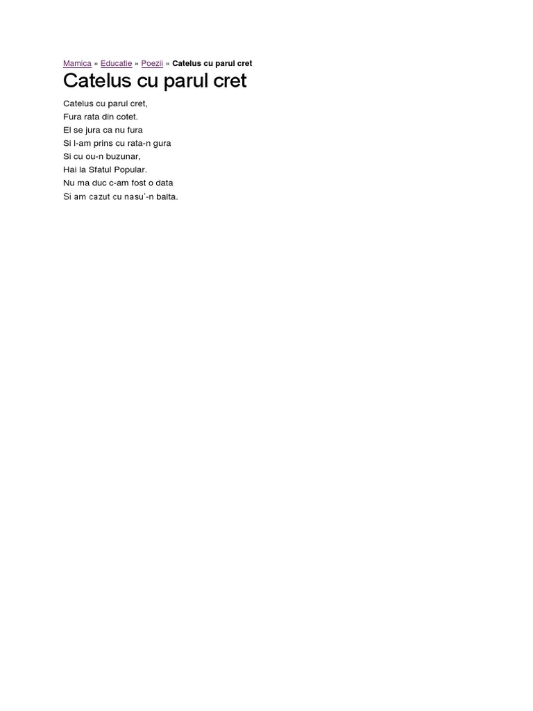 Poezii Catelus Cu Parul Cretpisicuta Pis Pis Pis Docx