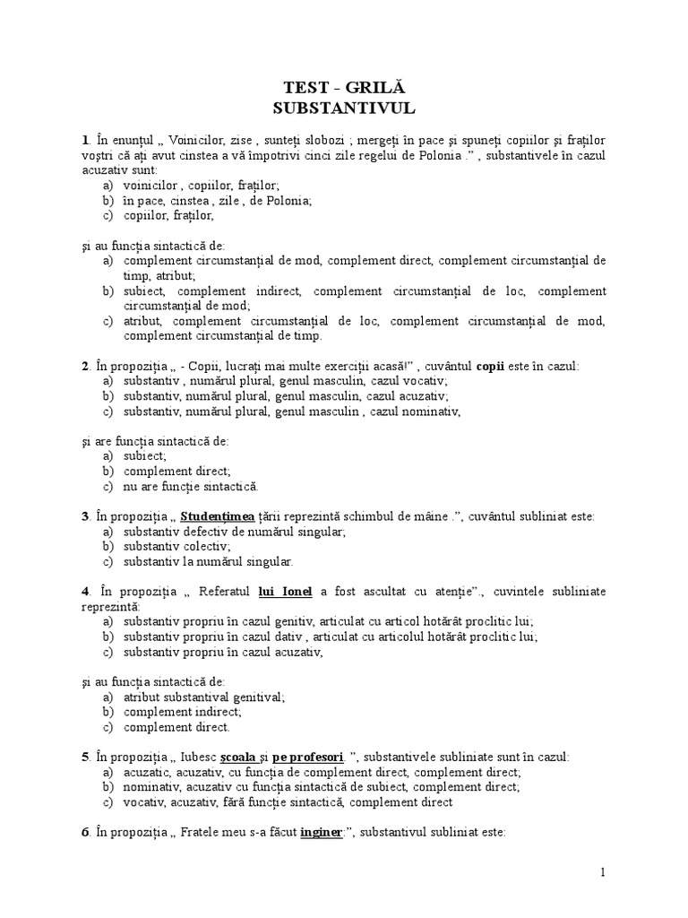 Test Grila Substantivul