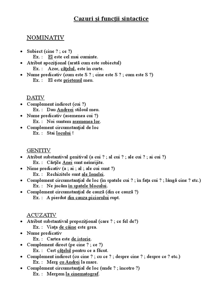 Cazurile Si Functiile Sintactice Ale Substantivului Romanian Language Ale Grammar