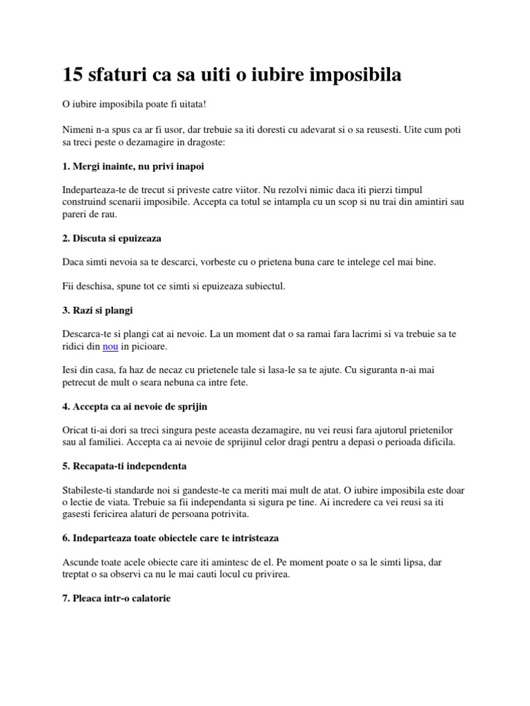 15 Sfaturi Ca Sa Uiti O Iubire Imposibila