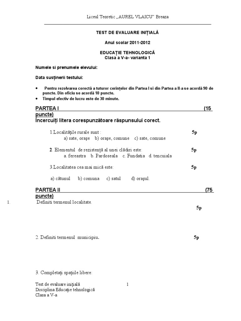 Clasa A V A Teste De Evaluare Initiala Test 1 Partea I Youtube