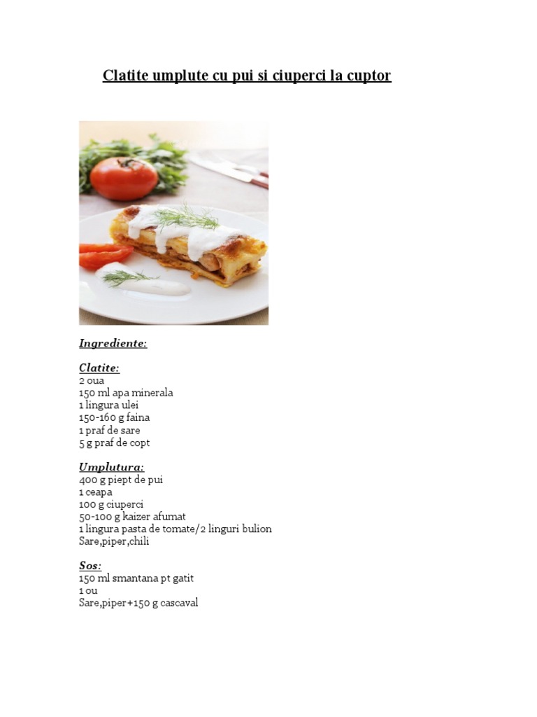 Clatite Umplute Cu Pui Si Ciuperci La Cuptor