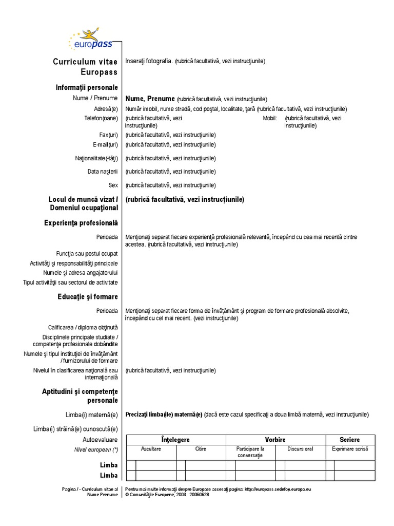 Model Cv Curriculum Vitae European Romana K6nq62026plw