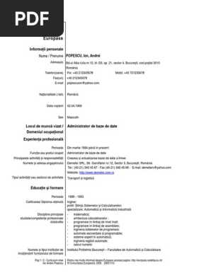 Un Cv Europass Completat Descarca Cv Europass Gratis
