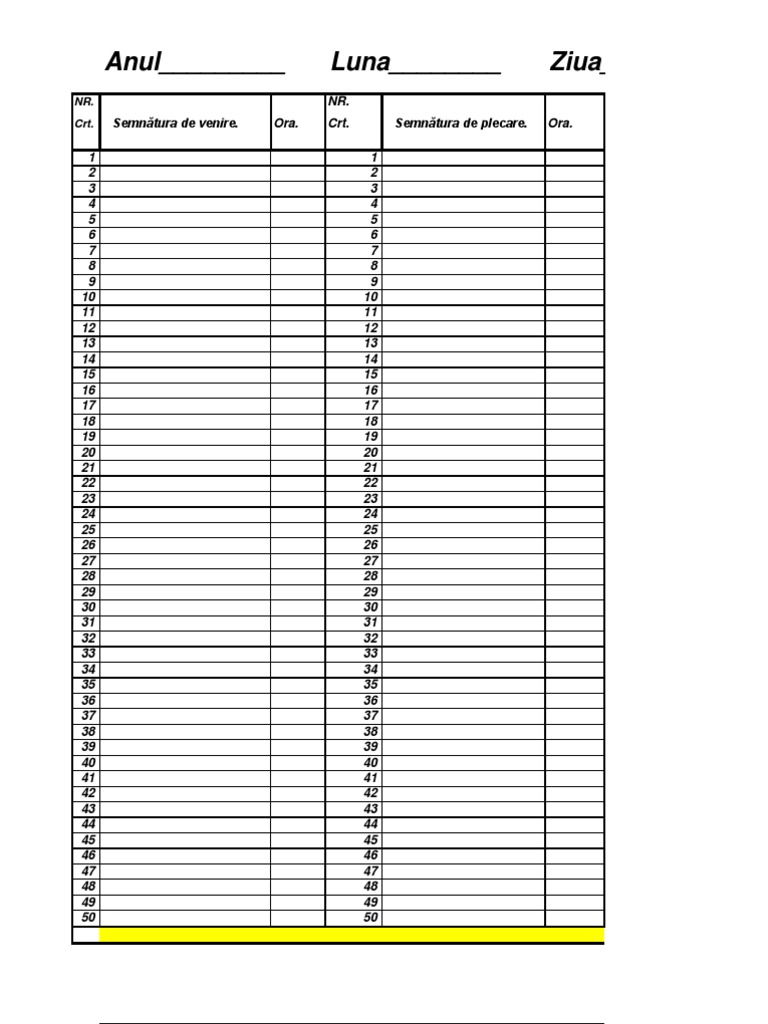 Condica De Prezenta 2019 Model Fisa De Pontaj Zilnic Percarelat Ml