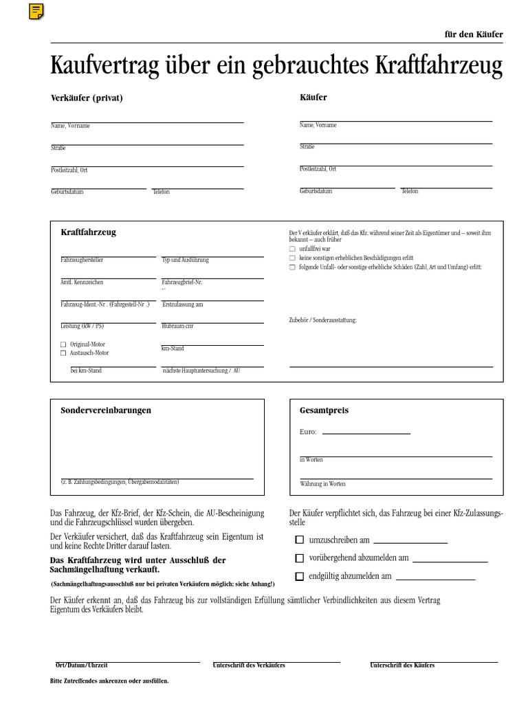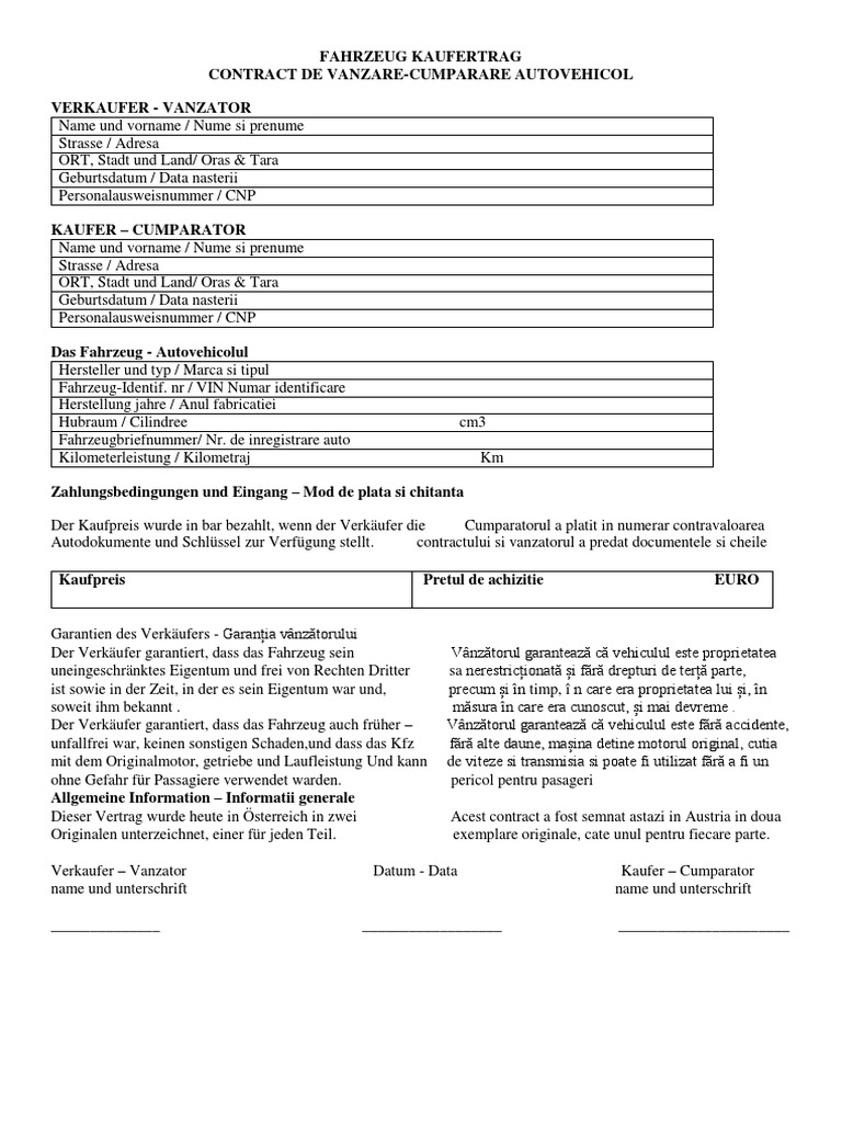 Contract Vanzare Cumparare Auto Germania Kaufvertrag