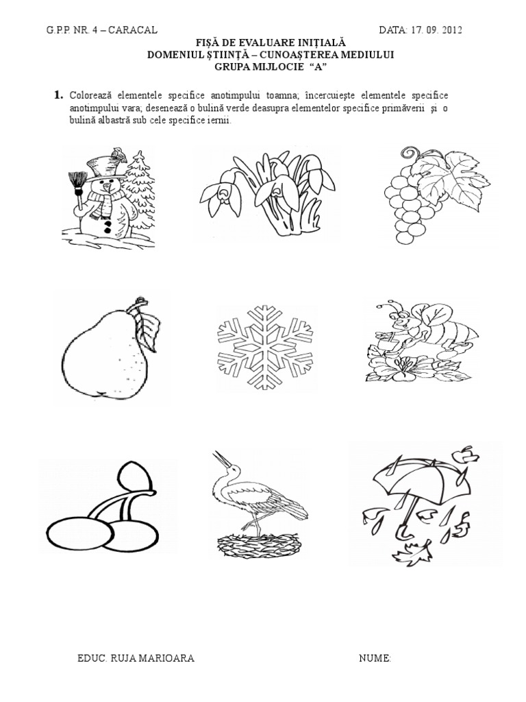 Fise De Lucru Gradinita Fise De Evaluare Initiala Grupa Mare