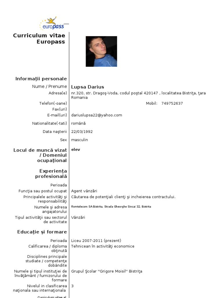 Model Cv European Completat Romana