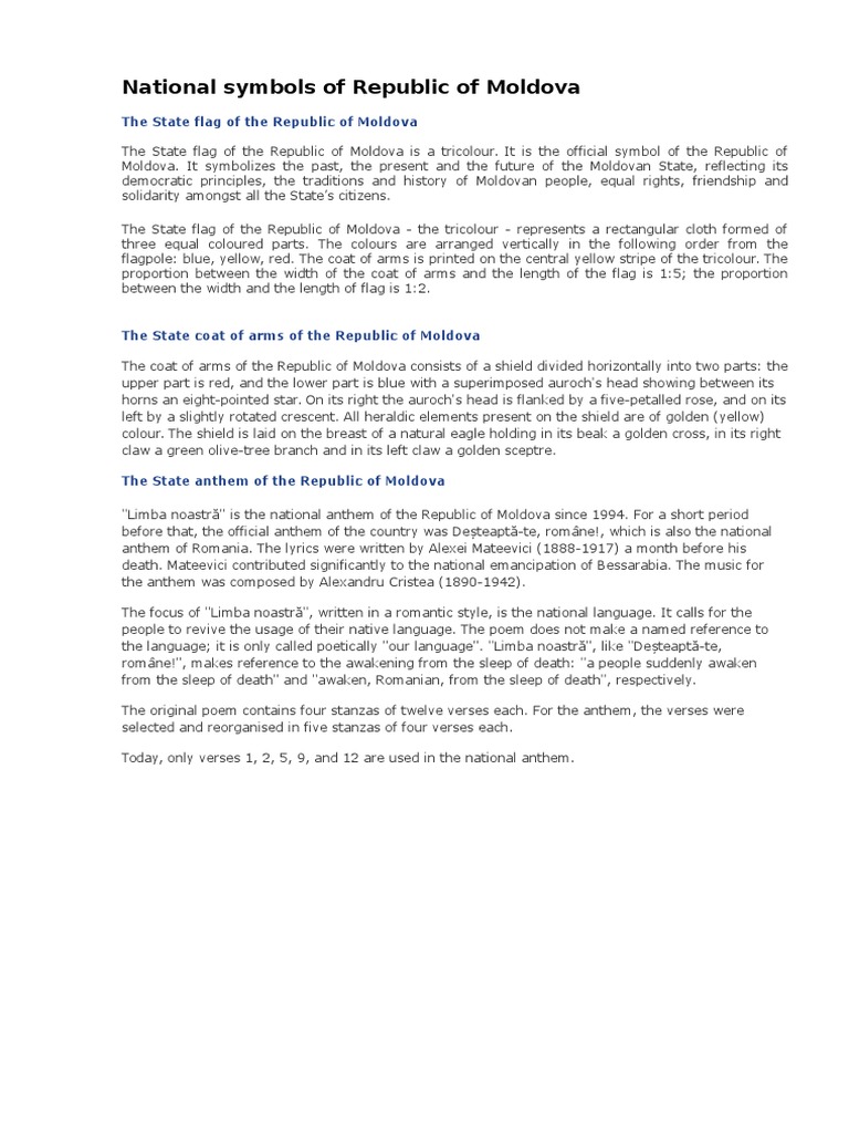 National Symbols Of Republic Of Moldova National Symbols Symbols