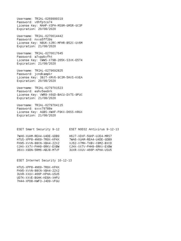 379414542 368674915 Eset Nod32 Antivirus Keys Valid 2020 Txt Computer Network Security Secure Communication