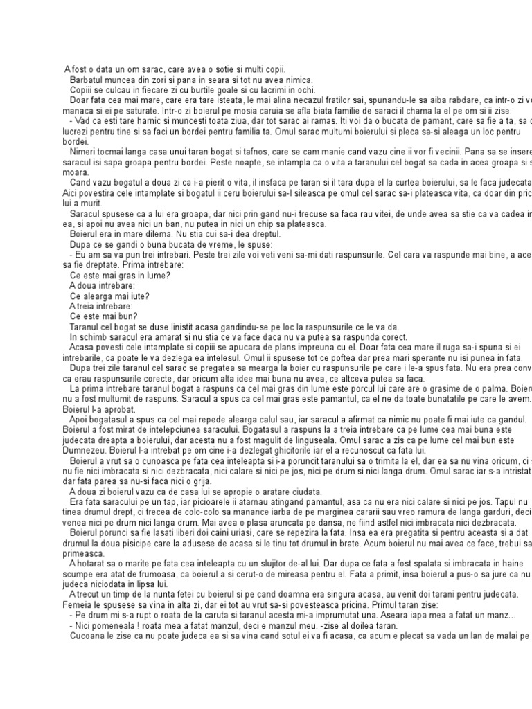 Tebuie Dintextul Fata Saracului Cea Isteata La Primul Ex De La 7 Ina La 9 Dau Coroana Brainly Ro