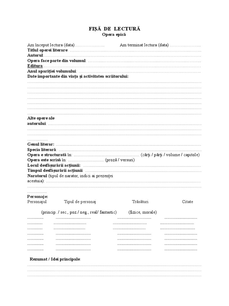 Fise De Lectura Literatura Universala Aplicatii Practice