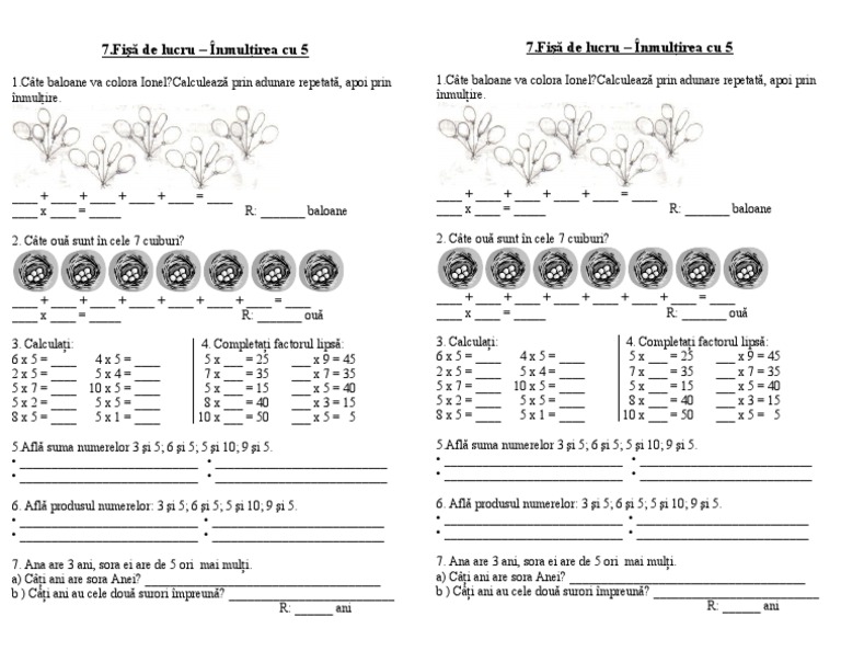 7 Fisa De Lucru Inmultirea Cu 5