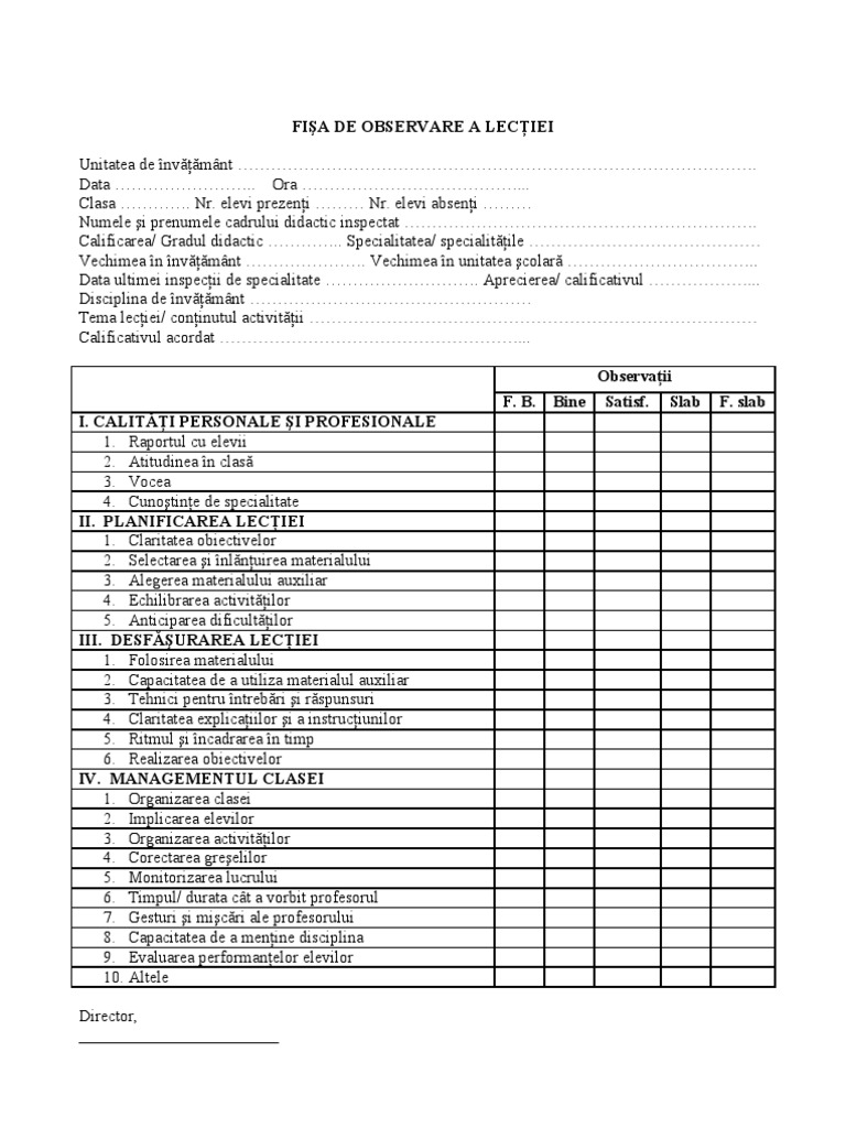 Curs Fisa De Observare A Lectiei Pedagogie 60710 Regielive