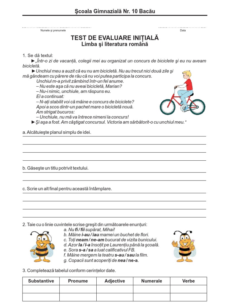 Test Iniţial Limba Romana Clasa A Iv A