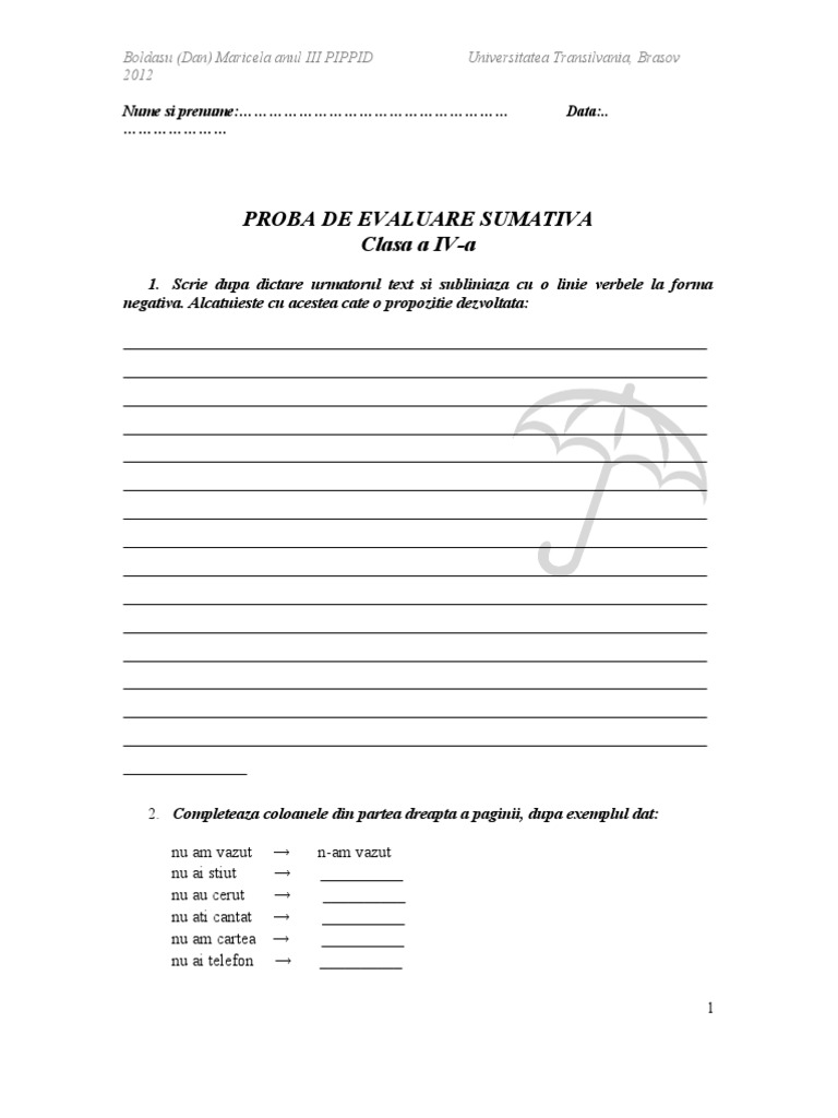 Fisa Evaluare Sumativa 4 A Romana