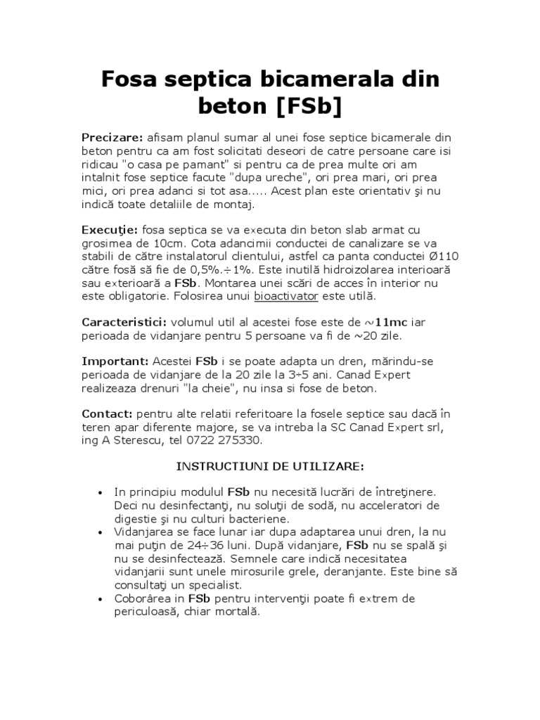 Fosa Septica Bicameral A Din Beton Pdf Document