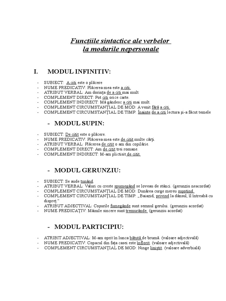 Funcţiile Sintactice Ale Verbelor La Modurile Nepersonale I Modul Infinitiv