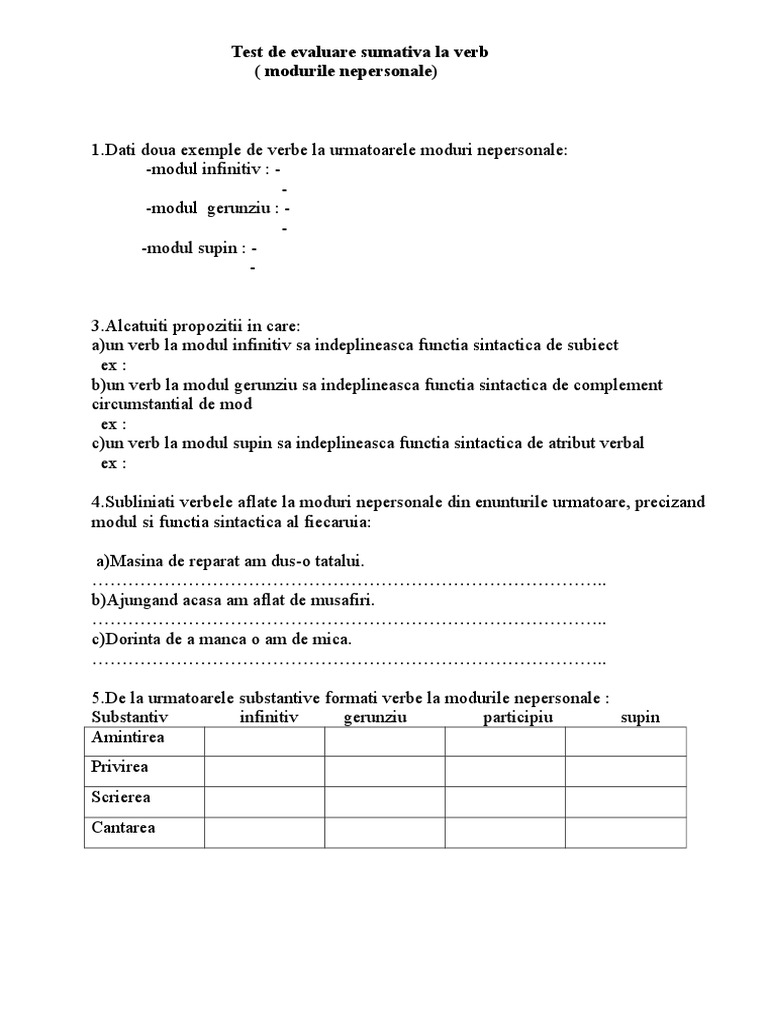 Fisa De Lucru Functii Sintactice Ale Verbelor La Modurile Nepersonale Docx